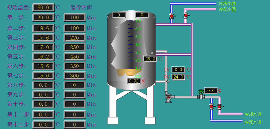 冷卻水和冷凍水的兩段降溫方式切換是PLC根據(jù)水溫和閥門的開啟度自動切換的。